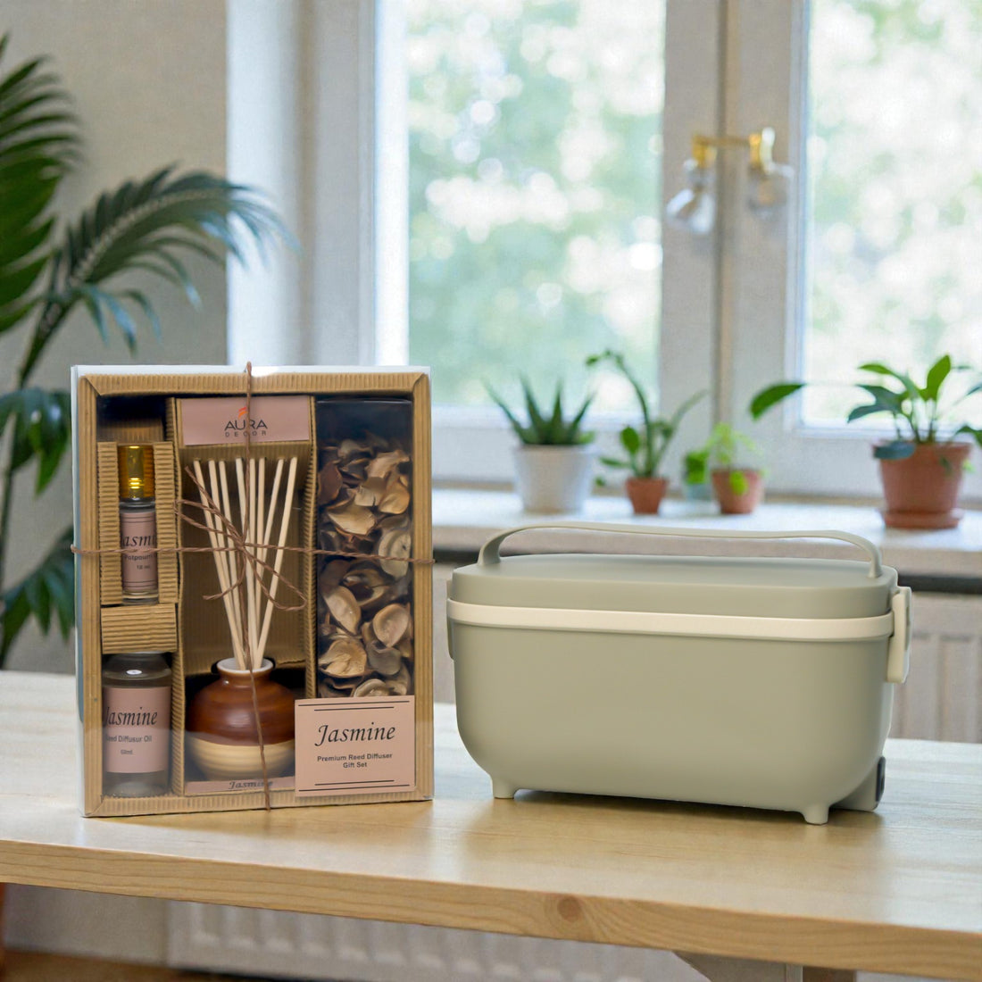 E-Munch Smart Electric Lunch Box + AuraDecor Jasmine Reed Diffuser Gift Set | Combo Offer |
