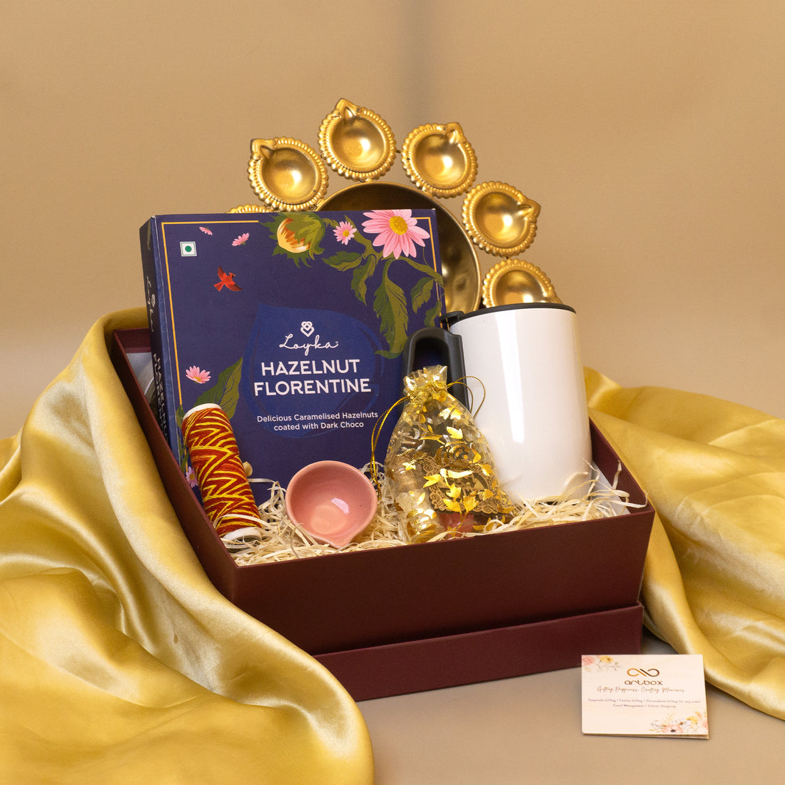 Illuminate your celebrations with elegance and charm! This beautifully curated hamper includes: 1. Hazelnut Florentine:...
