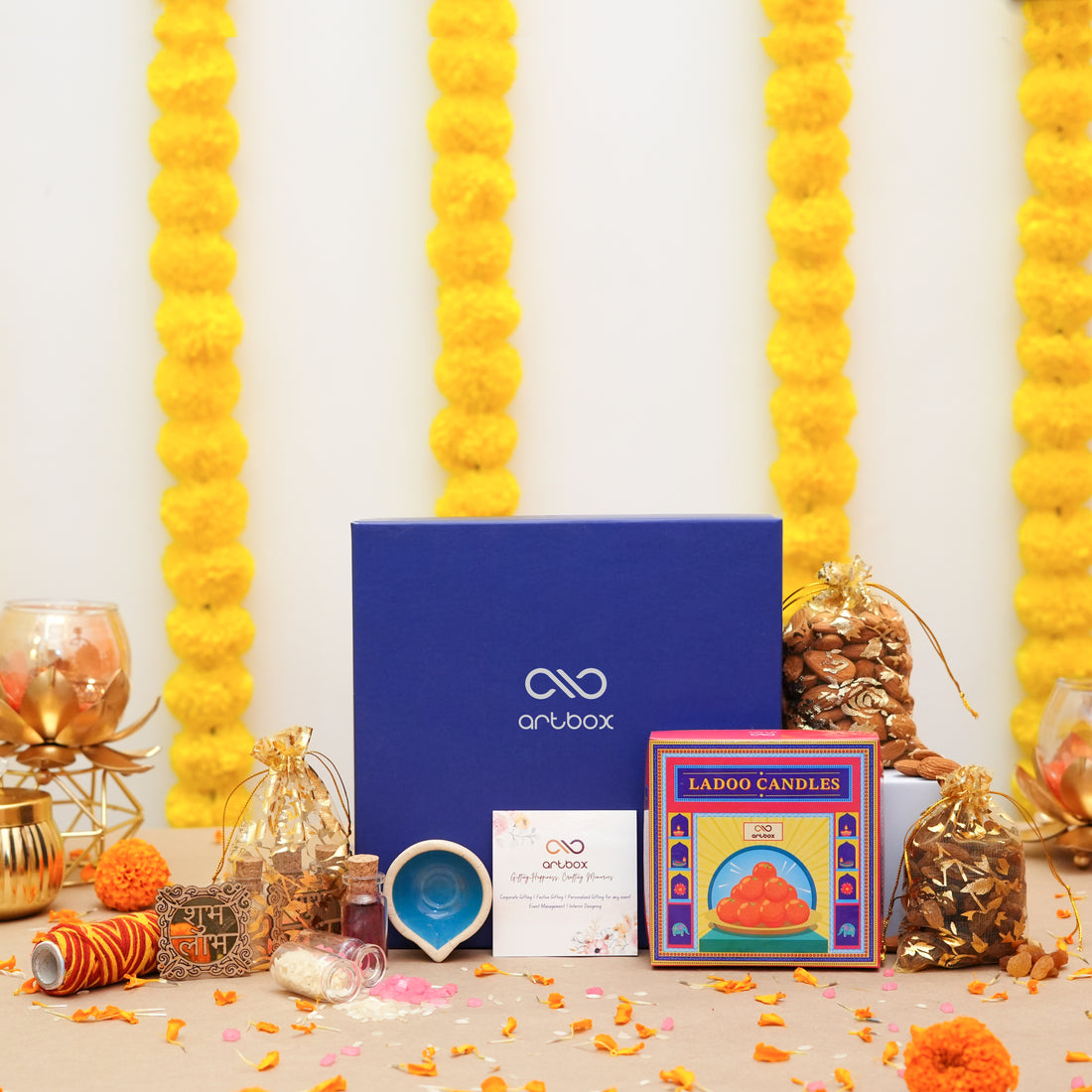 Illuminate your celebrations with elegance and charm! This beautifully curated hamper includes: 1. Ceramic Aroma...