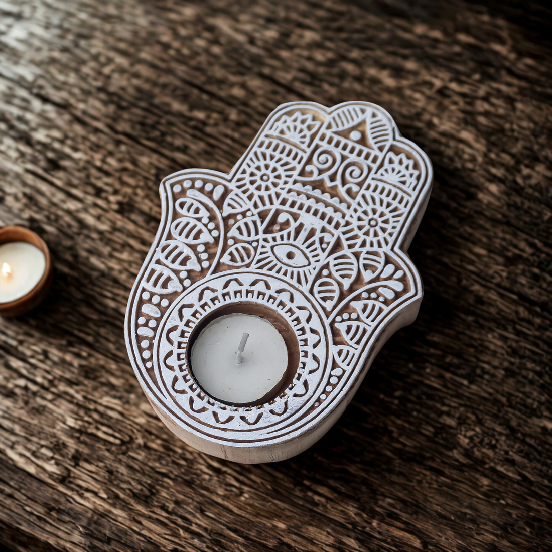 Hamsa Wooden T-Light Holder