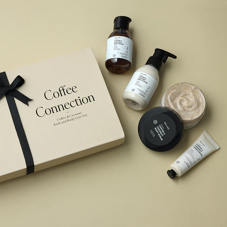 A premium self-care hamper infused with the richness of coffee and the nourishing goodness of coconut. This luxury gift box includes a complete body care routine featuring body wash, lotion, scrub, and hand crème—all beautifully packed in an elegant box with a ribbon finish. Perfect for gifting on birthdays, anniversaries, festive occasions, or corporate events.