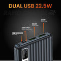 - 22.5W Fast Charging With QC+ PD : QC and PD technologies are designed to charge devices much faster than standard USB charging. QC can adjust the voltage to optimize charging speed, while PD dynamically adjusts the power output to match the needs of the connected device, ensuring efficient and safe charging.