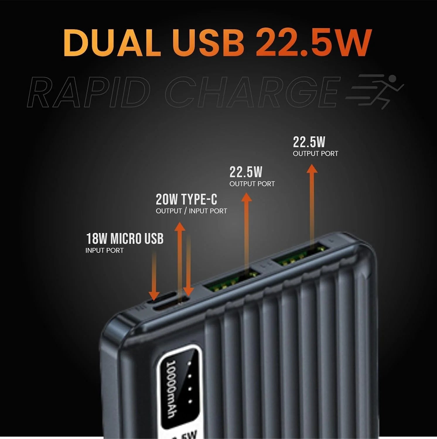 - Dual Input Port : Dual input ports gives you flexibilty to charge the powerbank with Type C or Micro USB.