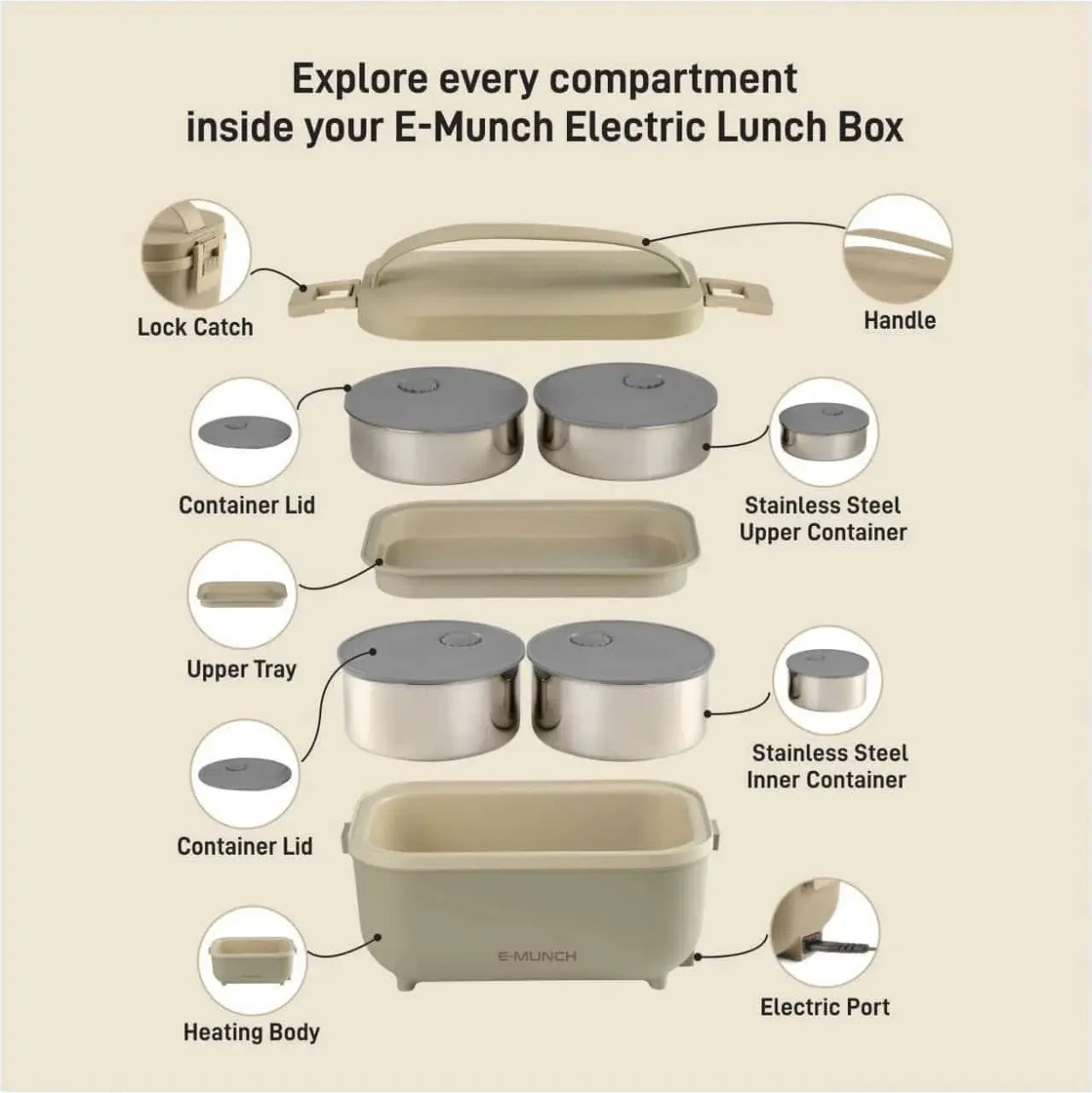 The E-Munch Smart Electric Lunch Box lets you enjoy warm, homemade meals anytime at the office or home. Designed with a compact body, secure locking system, and easy-carry handle, it ensures hassle-free heating and mess-free use—perfect for busy workdays.