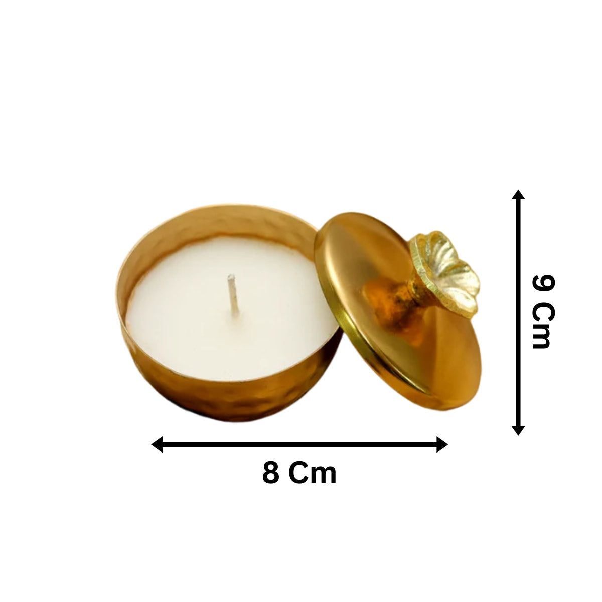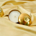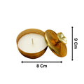 Introduce an element of richness, warmth, and a subtle, calming scent to your home with the "Gold Metal Soy Wax Scented Candle." Presented in a hand-hammered metallic gold container with a sculpted floral knob on the top, it is made from high-quality, clean-burning wax, providing a consistent, prolonged flame. With a matching golden lid, to preserve the beautiful scent from the warming sun, and to improve the presentation. This Golden Lid candle would make a stylish addition to your festive décor, weddings, gifts, or simply to enjoy the rich glow and warm ambience in your home.