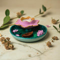 Embrace calm with this Lotus-on-Leaf Floating Candle, an artistically handcrafted sculpture of tradition, meaning, and elegance. The pink-gold lotus candle is placed on a deep green lotus leaf plate that contains mini lotus buds, giant lily pads, and a tiny boat.