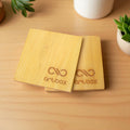 Two square wooden coasters, embossed with the "artbox" logo, which can be used to provide a functional surface for beverages.