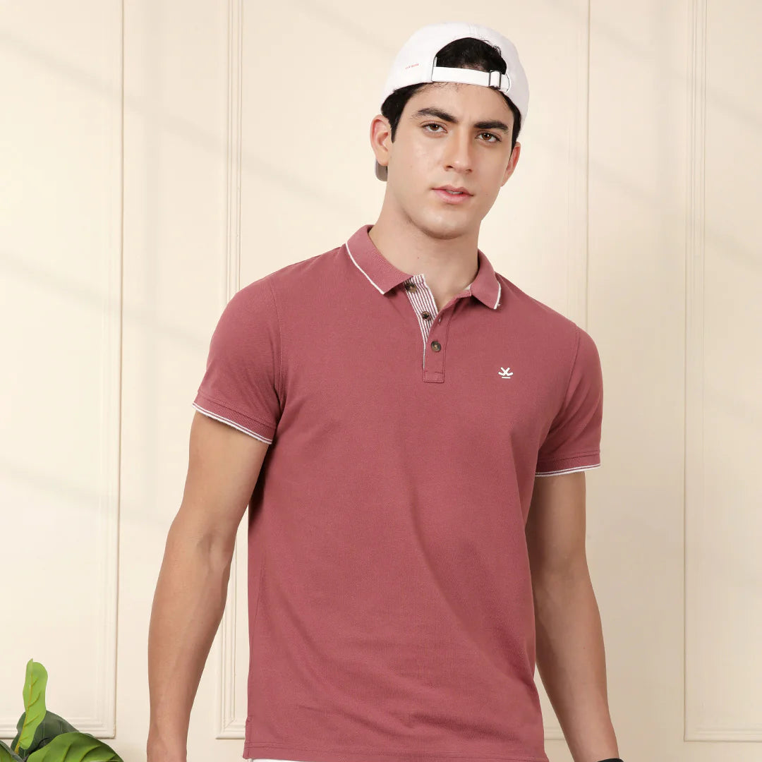 Keep it sleek with this pink polo featuring sharp contrast tipping. Smart, subtle, and endlessly versatile.