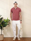 Polo Neck Cotton Blend Pink T-Shirt