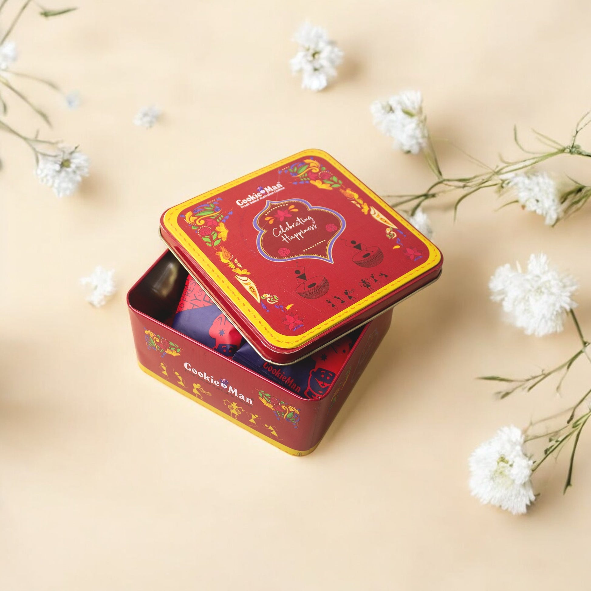 A beautifully designed mini tin box filled with rich, flavorful cookies—perfect for gifting or personal indulgence.