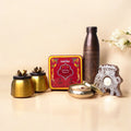 Sleek, metallic containers with a lotus lid and modern finish, ideal for storing dry fruits, sweets, or festive knick-knacks. Adds a functional and elegant touch to any table or gift tray.